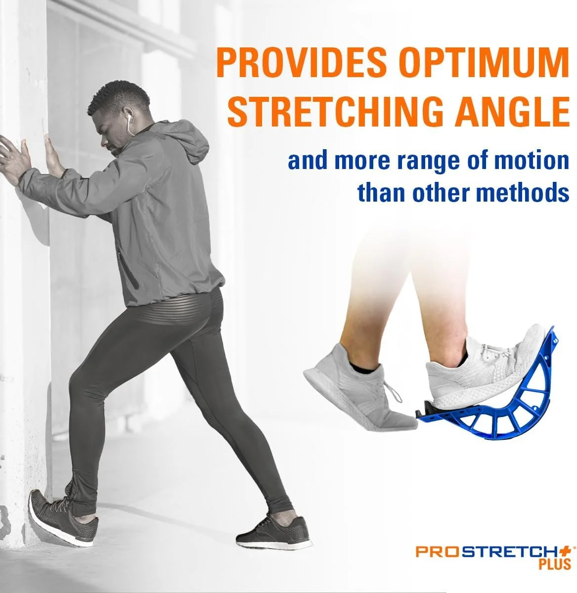 The ProStretch Plus Customizable Calf Stretcher features an adjustable toe and heel base, allowing you to change the stretch angle based on your foot size and comfort level. The Original model is smaller and non-adjustable but works well for shoe sizes up to Men’s 10. The Plus model also offers a slightly deeper stretch and better alignment for larger feet.